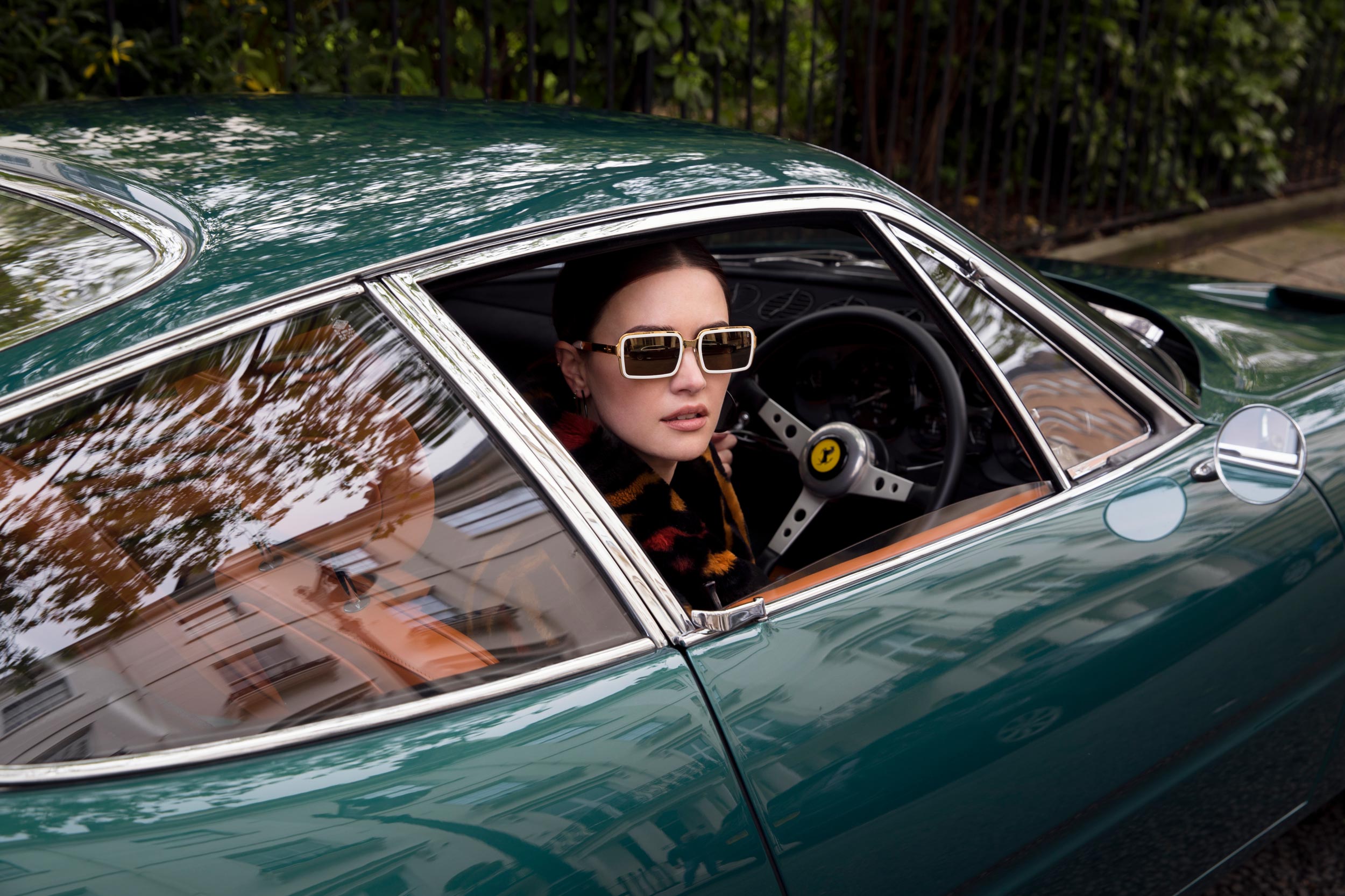 The 2024 ‘Freya’ frame is plated in precious Palladium and accompanied by exquisite, Divel grey lenses.